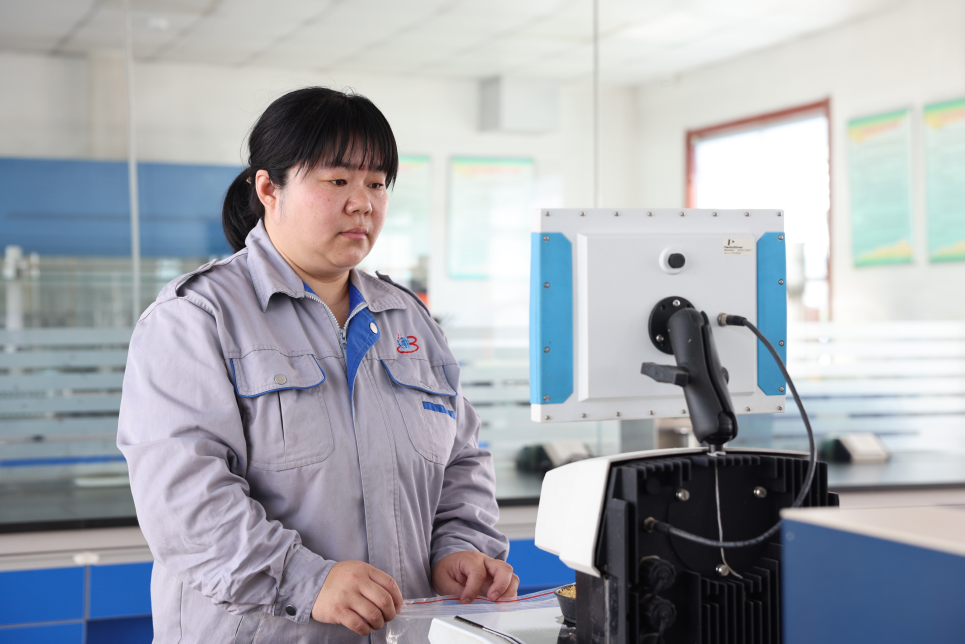 每天清晨,白宗英总是最早到达质检科室,准备好一天的检测工具与记录表格。对于玉米胚芽的质检,她如同一位严苛的“选美评委”。检测台上,她熟练操作设备仪器,精准获取玉米胚芽中的水分含量、含油率等指标数据,通过专业的萃取与计算,确保每一批次的玉米胚芽都能为优质油品的产出奠定基础。