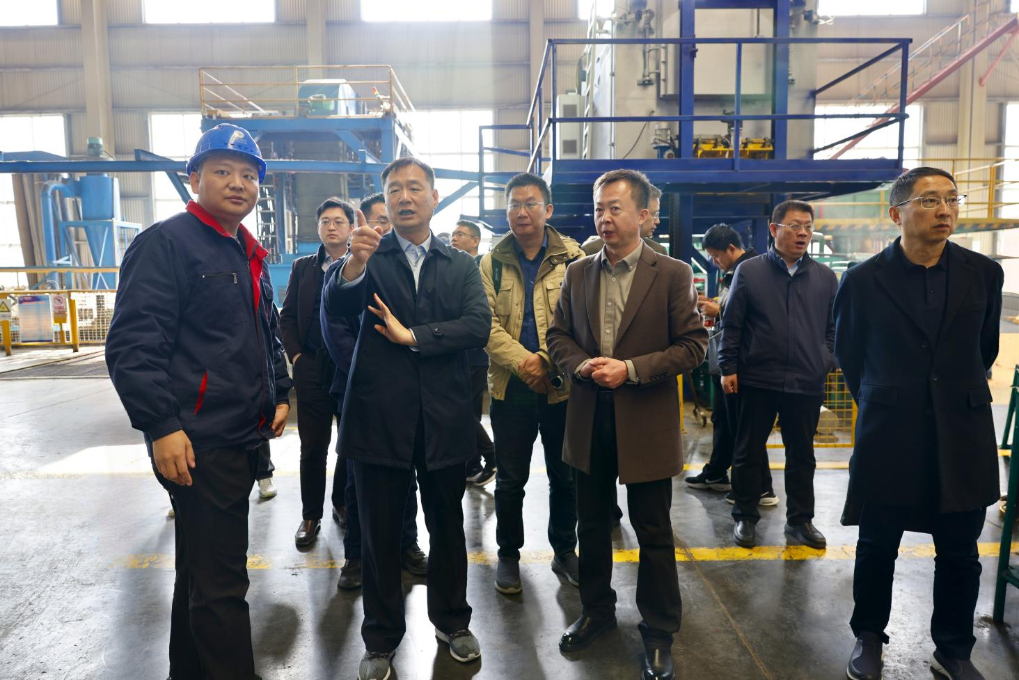 随后,调研领导到生产车间实地参观,了解企业在规模化生产和标准化建设等方面的实际情况。