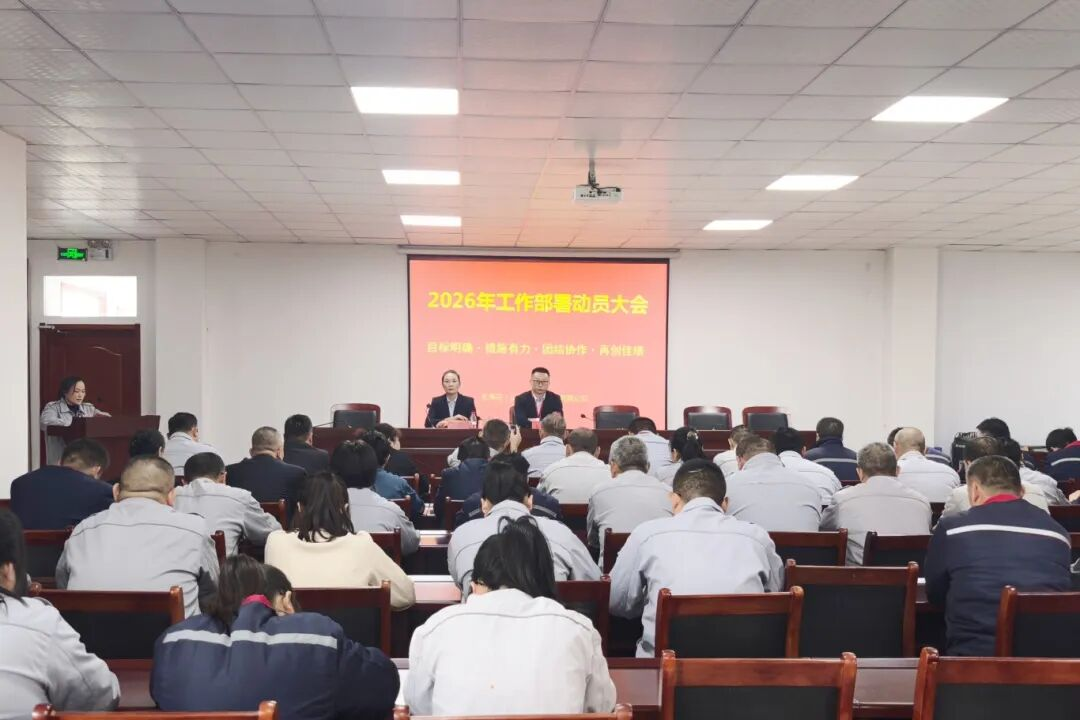 公司总经理王学刚安排部署2026年重点工作并作动员讲话,要求各部门强化协同联动,严格做好“三口”把控,不断优化工艺流程,深耕市场,坚守安全与风控底线,打赢“市场开拓、产品质量、运行效率”三大攻坚战,确保公司行稳致远。